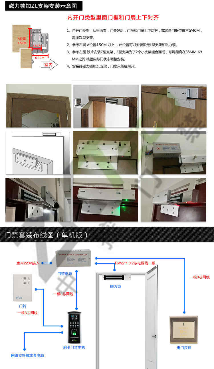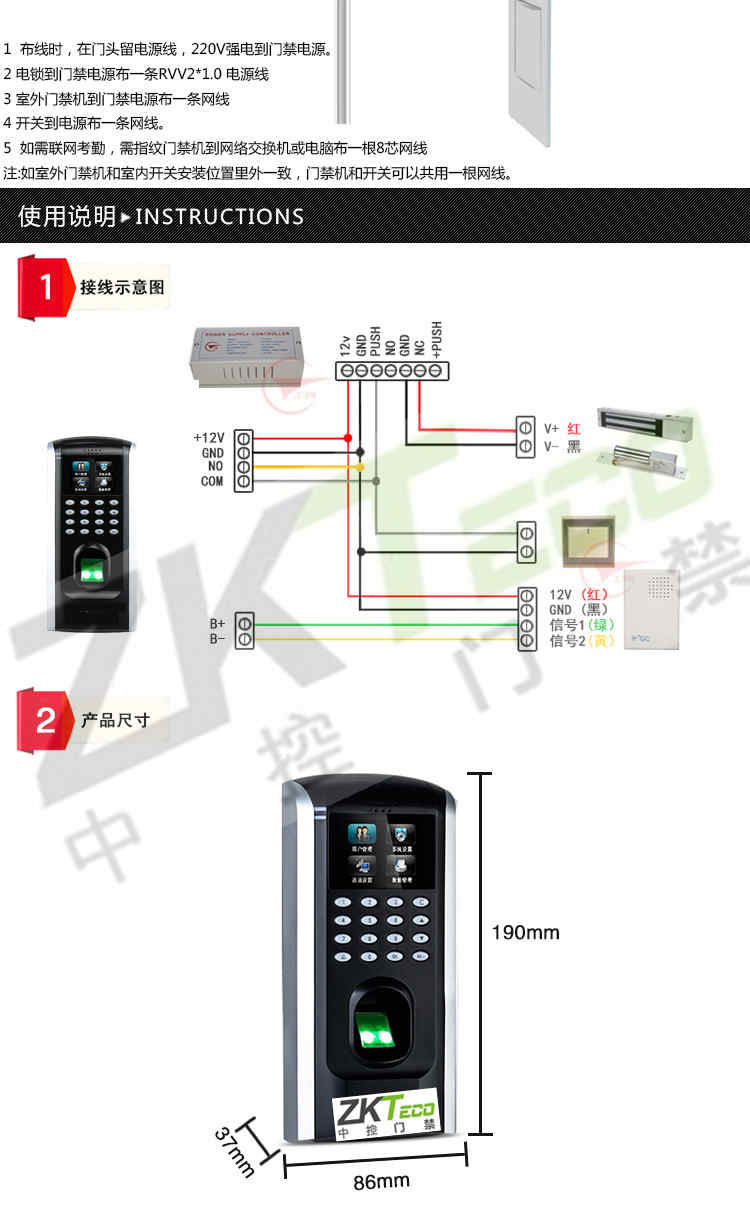 F7接線都按照標(biāo)準辦公室門禁設(shè)備要求,可直接兼容原先布線和電鎖、供電電源等,直接將F7換下感應(yīng)或密碼門禁即可,僅需1小時左右。