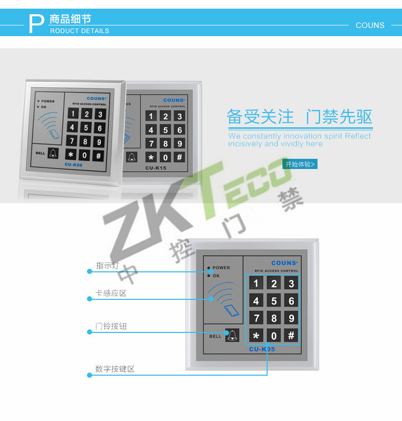 獨立感應卡門禁zk-cuk05