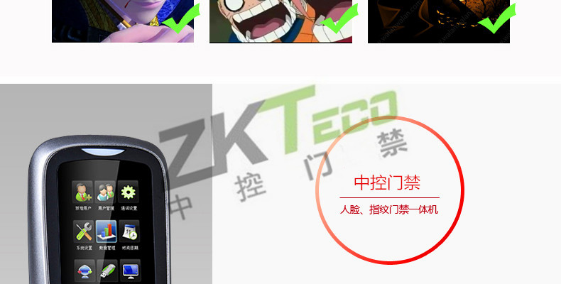 面部門禁一體機iFace7是基于ZEM800多媒體開發平臺設計的一款集指紋和面部混合驗證的3寸觸摸彩屏門禁終端,采用ZKFinger VX10.0最新指紋算法及ZKFace VX7.0面部算法,識別速度快,靈活選擇面部、指紋或者密碼開門方式,集成高分辨率夜市紅外和雙攝像頭功能,適應范圍廣。支持高級門禁功能(不同時間段開門,多人開門,拆機報警,門未關好報警,門被非法打開報警,開門按鈕輸入,有限門鈴接口,脅迫報警等)。標配的TCP/IP通訊,支持跨網段跨網關連接,是安防工程的首先產品,可用于銀行、部隊、機場等高安全場所。