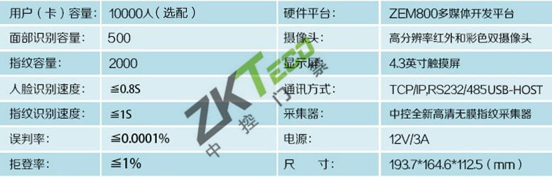 該產品采用了中控科技最新的ZEM800核心板,ZKFinger10.0指紋面部混合識別算法,容量大,識別速度快,集成高分辨率夜視紅外和彩色雙攝像頭功能,適用范圍廣,不受外界光線的影響,無論是在強光下還是在黑暗中也能進行有效識別。該系列已經通過了超過10萬面部數據庫長達2年的測試,同時該算法也在美國San Jose大學年度測試中名列前矛,在用戶舒適度方面獲得了最佳評分。iFace采用了嵌入式中控Multi-Bio CPU,主頻為630MHz,可以處理高達1:20000的1:N速度,符合人體工程學的外觀設計,工業設計由德國專業公司主導完成,模具采用了PC材料+蝕紋工藝+鏡面工藝,采集比對就如照鏡子一般,支持4.3寸全觸摸TFT,2個標準功能鍵,其它按鍵在TFT上全觸摸操作。標配TCP/IP通訊方式,支持跨網段跨網關連接。