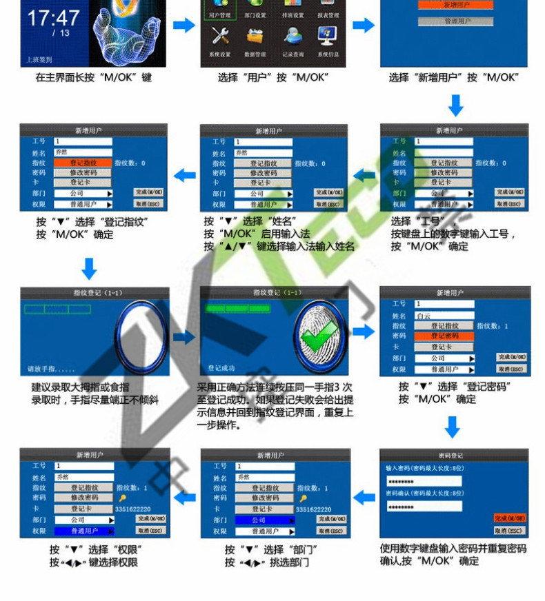 JC-608S指紋考勤機 高清彩屏打卡機