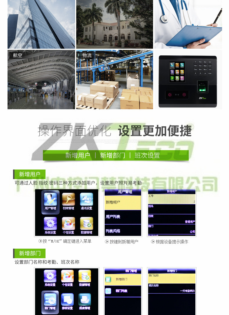 指紋打卡機UF200產品介紹: 1.歐式流線型設計,觸摸與微動按鍵并存,面部、密碼、指紋多種識別方式為一體,高品質、多功能的完美體現。 2.面部容量200張,指紋容量400枚。 3.TCP/IP、U盤通訊方式。 4.自助式考勤功能。