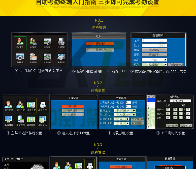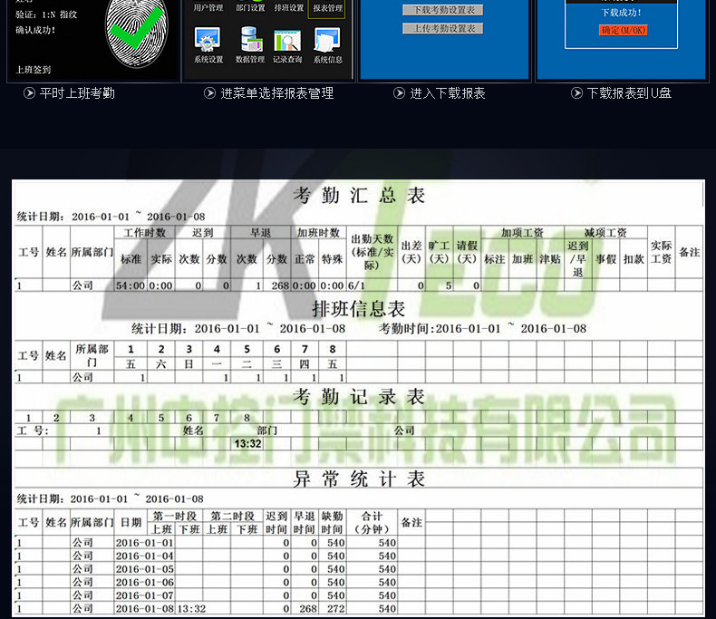 U盤下載:用戶可通過U盤下載考勤數據及上傳自定義背景圖片;