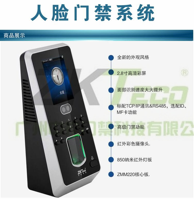 iFace3采用熵基科技ZKFace 7.0高速面部識別算法,誤判率低,識別速度超快,高分辨率夜視紅外燈和專業彩色雙攝像頭,無論在何種環境中也能有效識別。該系列運行于全新的ZMM221平臺,CPU主頻達1.0Ghz,硬件平臺速度更快,且優化面部識別速度、固件性能;該產品同時采用了熵基科技架構的固件,具備靈活的權限設置及便捷的數據管理功能;標配TCP/IP通訊方式,支持跨網段跨網關連接。