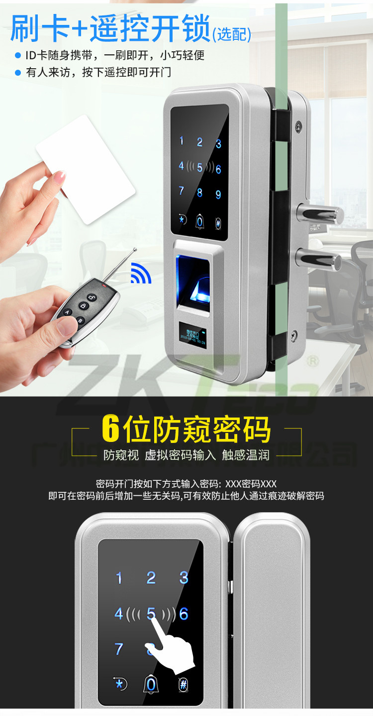 智能玻璃門(mén)密碼鎖 遙控刷卡門(mén)鎖
