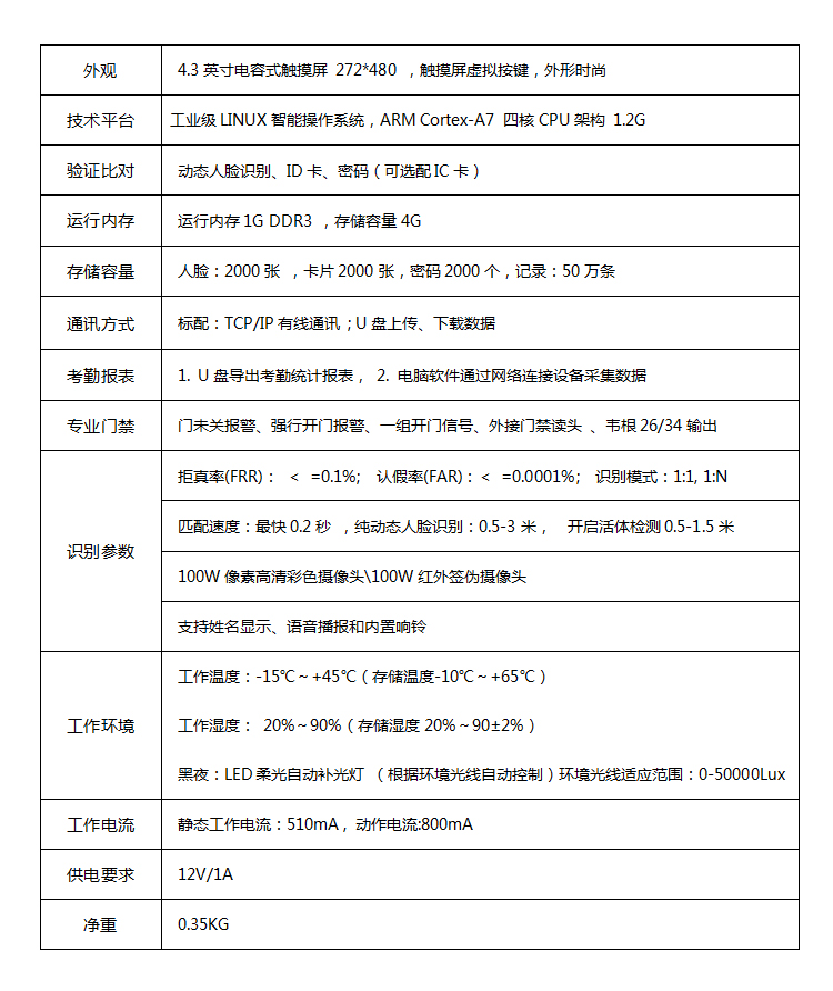 動態人臉識別考勤門禁 面部簽到打卡機
