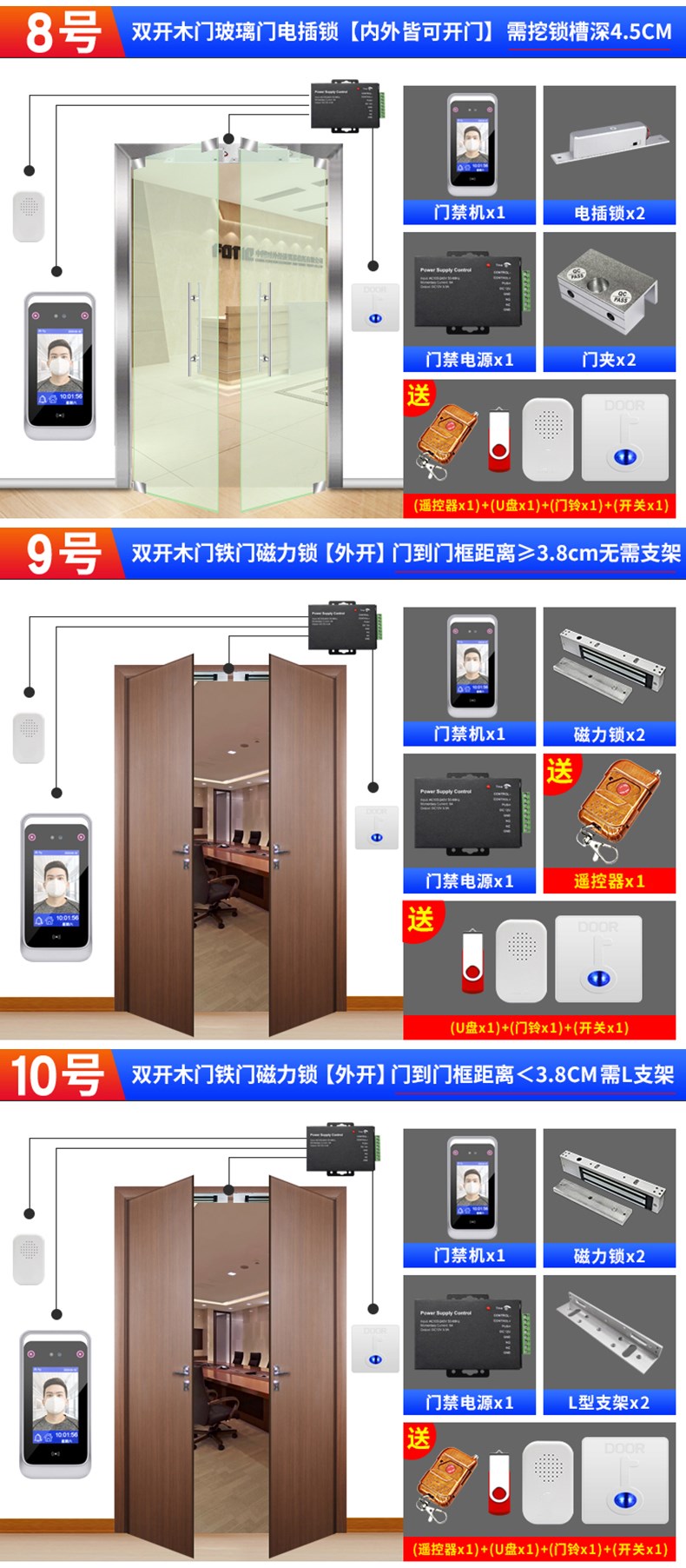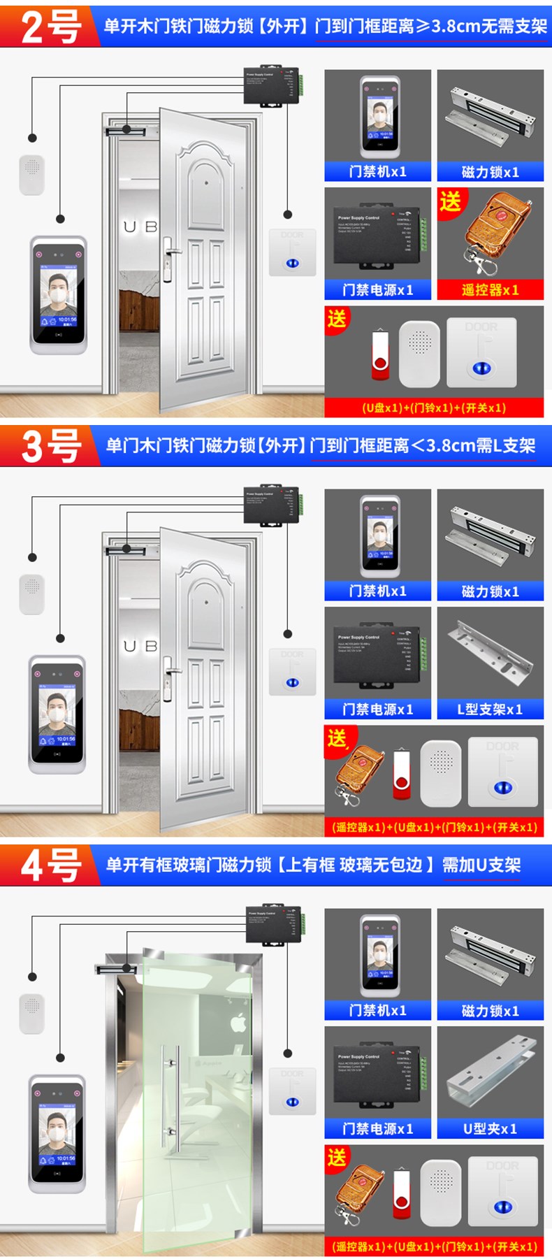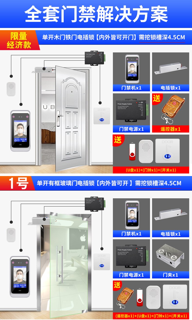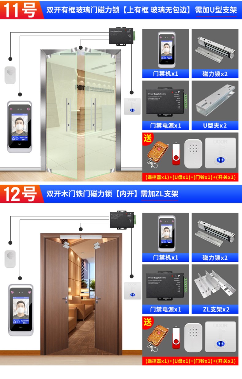 動態人臉識別考勤門禁一體機 面部簽到打卡機 門禁系統套裝辦公室木門鐵門玻璃門磁力鎖電插鎖