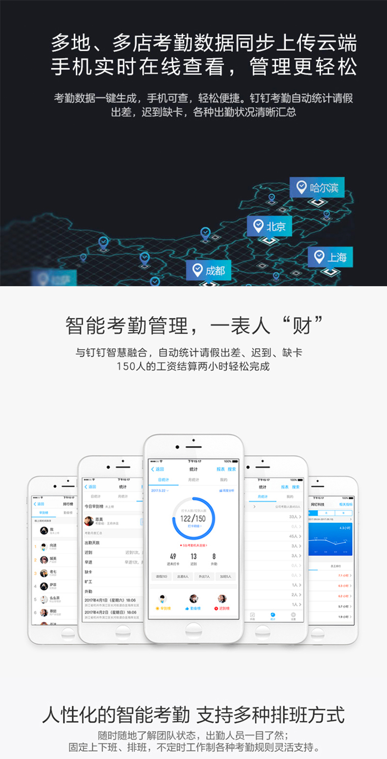 一鍵導入通訊錄、瞬間完成考勤設置;與考勤數據打通,150人的工資結算2小時輕松完成